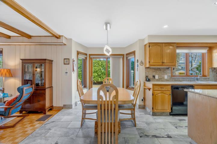 Lovingly maintained by the same owner for 48 years, this exceptionally large, bright, and spacious home offers room for the whole family. The upper level features 6 generous bedrooms and 3 full bathrooms. The main floor boasts an inviting open concept kitchen with center island, granite counters, and dinette with patio doors to the yard, flowing into a warm family room with slow-combustion wood stove. Elegant formal living and dining rooms, laundry, and double garage complete this level. Expansive unfinished basement with endless potential. Quiet crescent near schools, parks, community pool, and public transit.